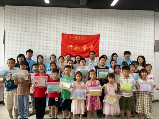 走进学堂时,班级里正在开展自然科学课程。小学员们对于学院老师们的到来表示了热烈的欢迎。在课堂上,学院领导老师与小学员们亲切交谈,详细了解小学员的学习状况,鼓励他们克服各种困难,努力学习。随后,沈辉书记、陶敏副书记将文具用品赠送于小学员与“小先生”,鼓励大家好好学习。
