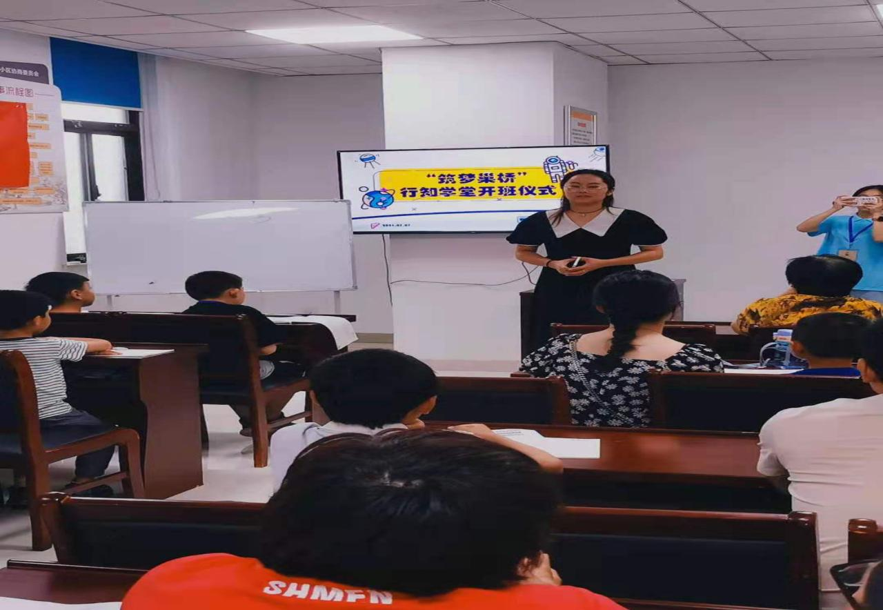 仪式由王梦月同学主持,她向小学员及家长介绍了学校的基本情况及本次行知学堂的具体课程安排。随后巢桥社区居委会副主任周玥发表讲话,她对筑梦巢桥行知学堂顺利开班表示祝贺,对行知学堂“小先生”们表示了热烈的欢迎和衷心的感谢,希望学堂小学员们珍惜宝贵学习机会,度过愉快充实的暑假。