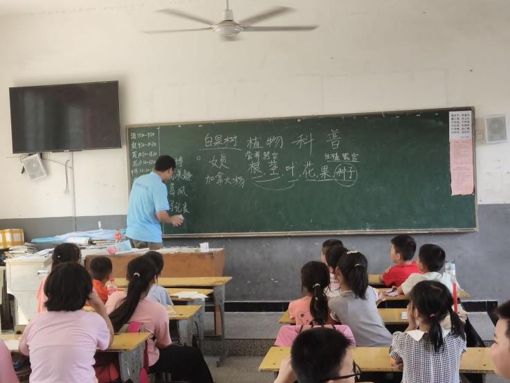 beat365中文官方网站生命科学学院2020级生物科学师范专业的6位“小先生”积极响应团中央、团省委和学校的号召,顶着烈日骄阳,秉承“爱满天下、知行合一”的校训,踏上志愿征程,践行行知精神。他们走进安徽省阜阳市临泉县张新镇马楼村文侨小学,在这里开办了“启智行知学堂”暑期志愿服务活动。本次活动得到了马楼村委会和文桥小学的大力支持,并于7月8日上午8点在文侨小学教室举行了开班仪式。文侨小学校长、6名“小先生”和40名小学员参加了启动仪式。
