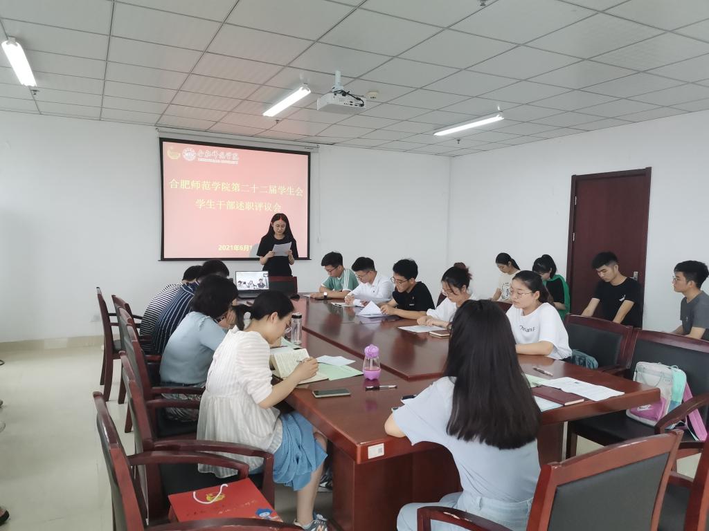 本网讯 为落实《beat365中文官方网站学生会改革实施方案》《关于开展beat365中文官方网站2020-2021学年学生会干部述职评议工作的通知》,推动学生会改革不断深入。6月16日中午,校团委在锦绣校区行知楼810和滨湖校区唯实楼203同步召开2020-2021学年校学生会学生干部述职评议会。学生工作部副部长刘艳,校团委副书记刁文彬,校学生会秘书长魏晓倩、校团委钟树旺参加席会议,各院15名普通学生代表参与考核。