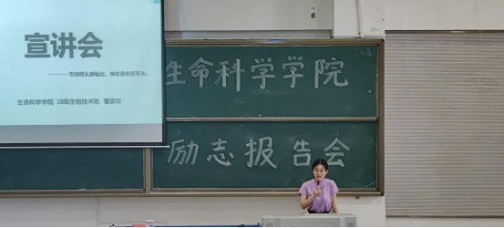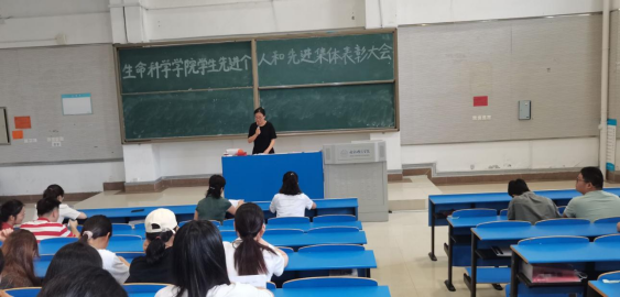 本网讯 为了激发同学们创先争优意识,更好地促进学院学风建设,6月15日中午,生命科学学院在锦绣校区逸夫楼西阶二教室举行先进个人和先进集体表彰大会暨优秀学生励志报告会。生命科学学院党委书记郭桃芬、副书记杨娜、辅导员黄伟丽、高欢、黄洁、杨帆出席会议,受表彰学生和2020级全体学生参加了会议,会议同时邀请了2017级国家奖学金获得者王香存和2018级国家励志奖学金获得者胡洁、曹家玲三位优秀学生做励志报告,会议由辅导员高欢主持。