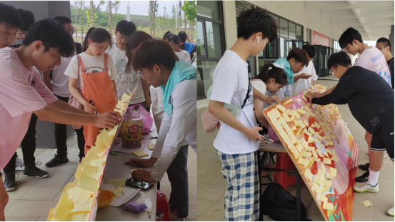本次活动采取匿名书信的形式,让同学们抒发内心感受,用简短文字表达内心最真挚的情感,传递出他们对美好生活的向往和期待。滨湖校区的同学们踊跃报名,将内心最美好的祝福留在展台上并合照留念,工作人员还给参与者赠送象征甜蜜快乐的五彩棒棒糖,传递物材师生的美好祝福。