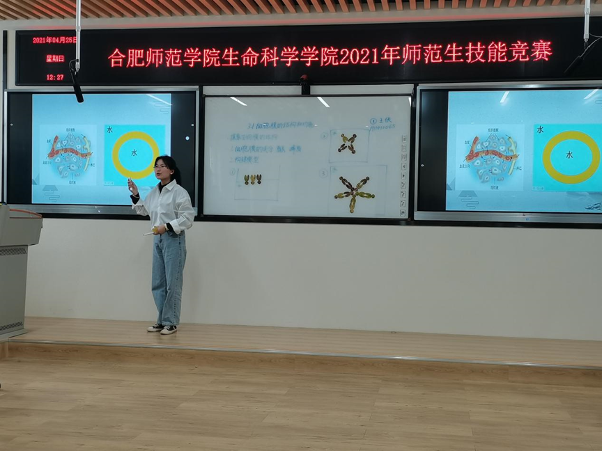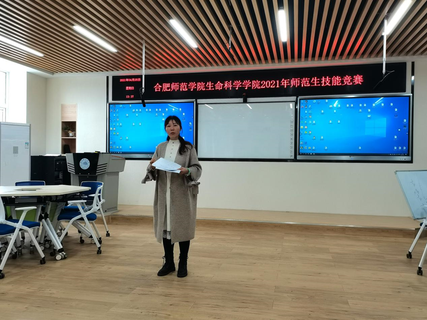 本网讯 为培养师范生的教学技能,增强教学实践能力。4月25日上午,beat365中文官方网站生命科学学院2021年师范生技能竞赛在逸夫楼502室成功举办。参加本次比赛的共有15名同学,分别来自18、19级生物科学(师范)专业。本次活动由生物科学系主任孙娴主持,并邀请了合肥四十六中的周龙清老师、合肥一中的朱承慧老师担任此次评委。生命科学学院徐慧敏老师及部分学生观摩了本次竞赛活动。