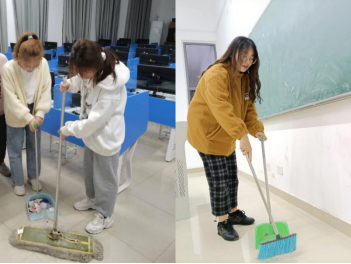 持续开展常规劳动。根据我院劳动教育实施方案,每天晚自习后,各班同学都会根据《值日表》中的时间安排赶往各班负责的教室进行卫生打扫,扫地拖地、擦黑板、清理桌内垃圾,经过一个多月的实践活动,同学们已经得心应手。同时班委们也会对卫生情况进行检查,面对不合格的地方提出修改意见,大家互相配合,不断完善。