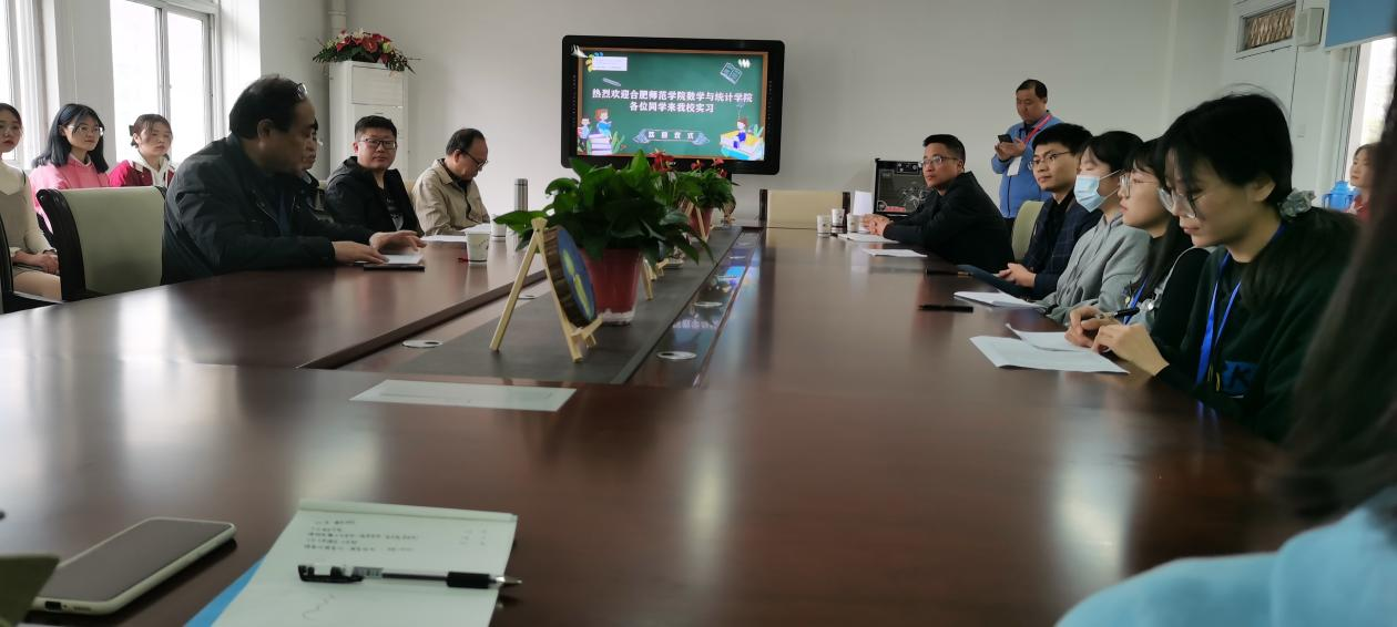 本网讯 根据学校教育实习工作安排,3月30日上午,数学与统计学院2018级数学与应用数学(师范)专业25名学生在张晓贵教授、许和乾副教授和吴兴杰副教授的带领下,赴合肥第48中学望湖校区开展为期14周的教育实习工作。合肥第48中学史承灼校长、谷峰副校长带领相关指导老师为我院实习生和带队老师举行了热烈的欢迎见面会。