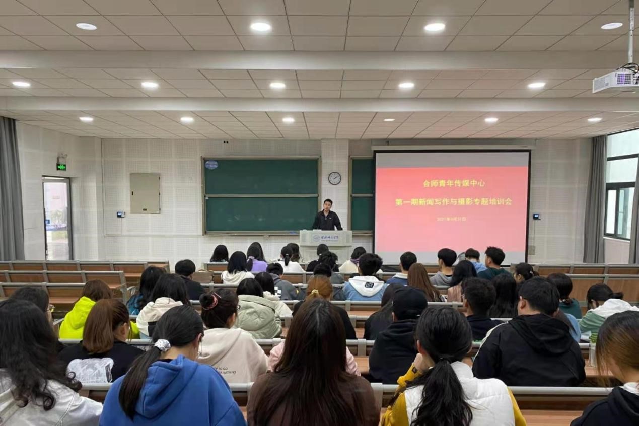 本网讯 为提升校团委学生记者专业技能,促进学校共青团宣传工作规范化发展,依据《合师青年传媒中心章程》,合师青年传媒中心于3月31日在滨湖校区举办新闻写作与摄影专题培训会。来自校学生会、合师青年传媒中心、学生社团文化服务中心、青年志愿者联合会、“第二课堂”学分认证中心的校团委全体学生记者100余人参加培训会,会议由合师青年传媒中心副主任刘宇主持。