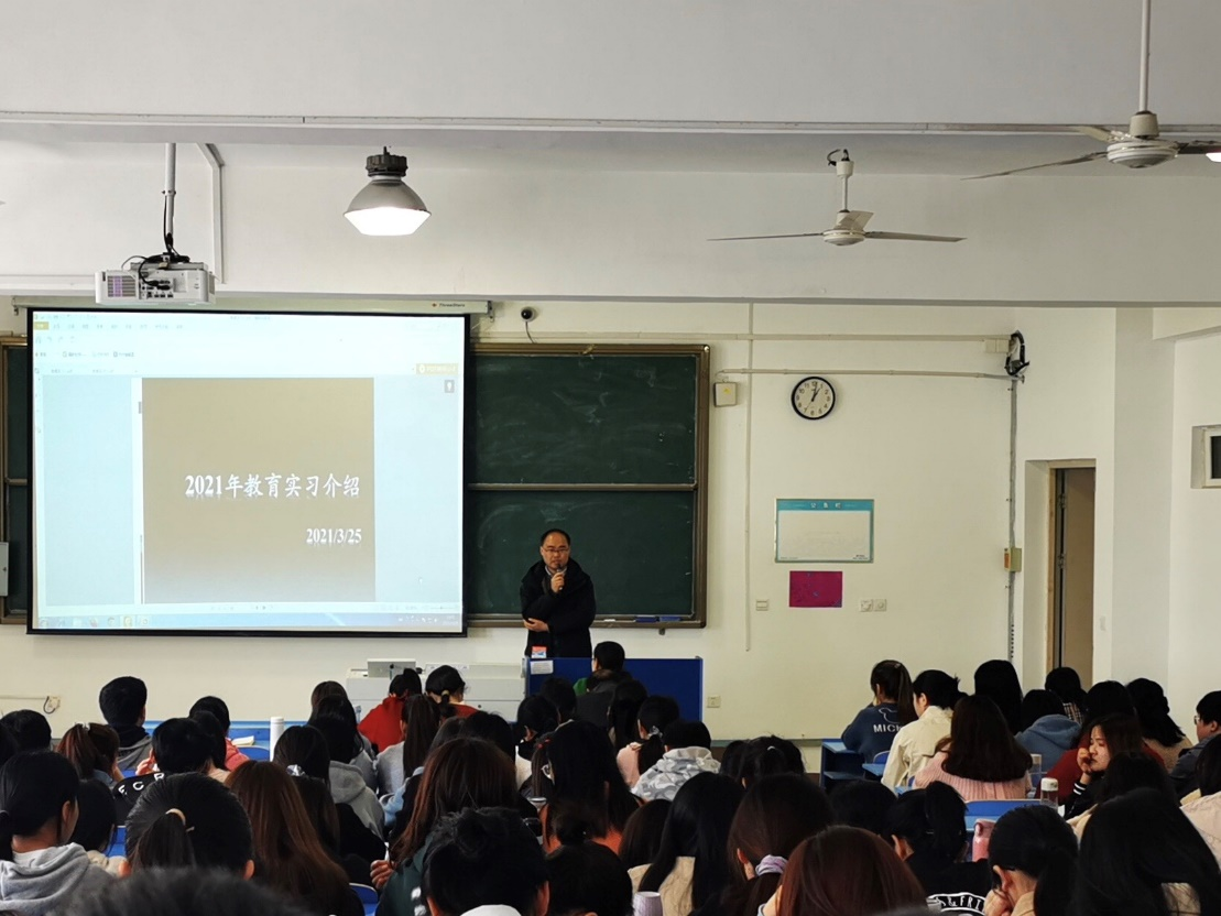 首先,杨刘向即将参加教育实习的同学们介绍了实习的基本情况。从实习的地点、实习时间、分组安排、任务与要求等多方面向同学们阐述了本次教育实习的基本要求,并强调了实习期间的安全问题及兼顾其他学业的重要性。