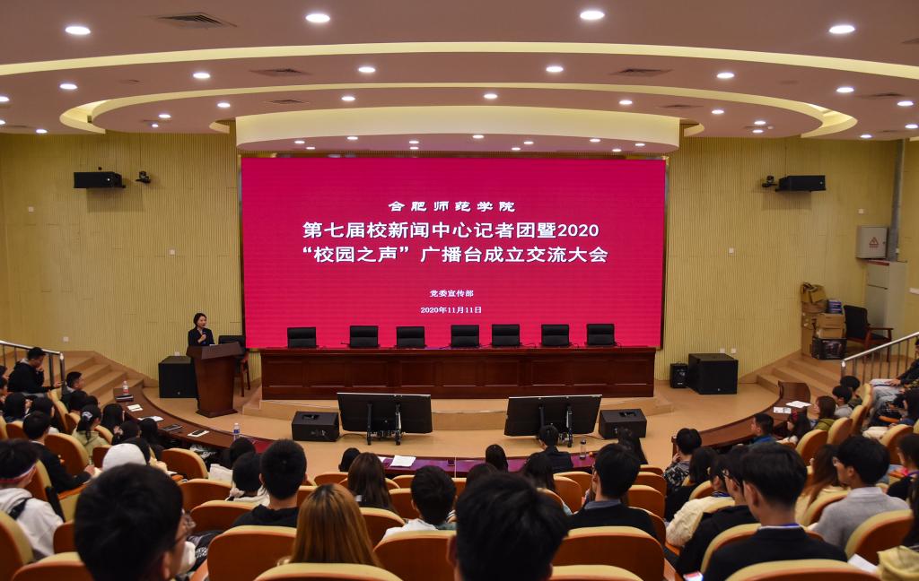 本网讯 近日,在beat365中文官方网站滨湖校区报告厅举行了第七届校新闻中心记者团暨2020届“校园之声”广播台成立交流大会。指导老师周倩、曾飞、 夏芳,校新闻中心记者团及广播台全体成员参加会议,会议由周倩老师主持。