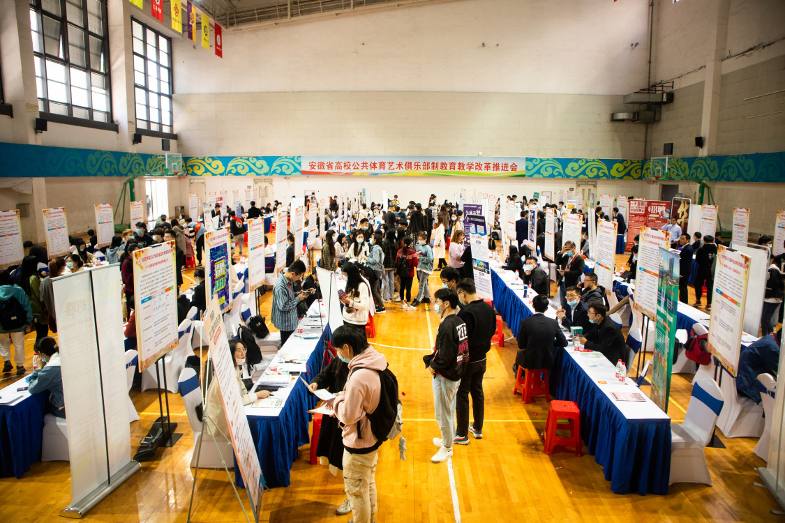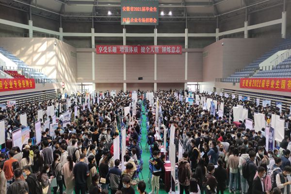11月7日上午,安徽省2021届毕业生国有企业专场招聘会在安徽大学磬苑校区体育馆举行,共有来自安徽、江苏、北京、上海等省市的101家国有企业参会,主要涉及建筑业、交通运输业、制造业、信息传输业、教育业等。学院集中组织了三孝口校区、锦绣校区130余名毕业生参会,毕业生在现场投递了486份简历。