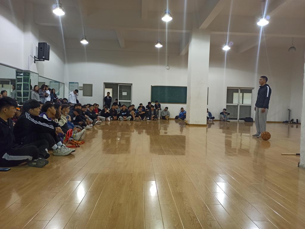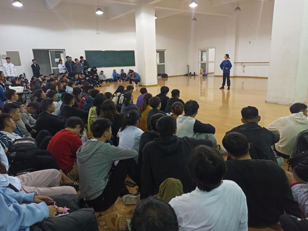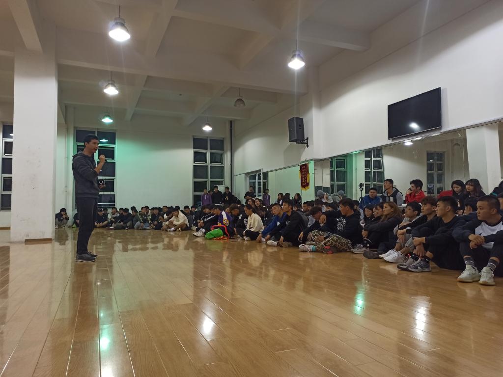 本网讯 为进一步加强运动训练专业学生教学技能培养,提高学生的教育教学能力,搭建教学相长的交流平台。11月2日,在锦绣校区体育馆二楼舞蹈房,体育科学学院运动训练系组织开展“无生上课”实践活动,邀请曹垚和王金晶两位老师,石可、杨涛和舒敏三位学生主讲,运动训练系汪辉老师、廖顺建和陆保云老师及全体学生参加,其中,17级和18级学生现场观摩,19级和20级通过线上直播观摩。运动训练系主任游永豪副教授主持。
