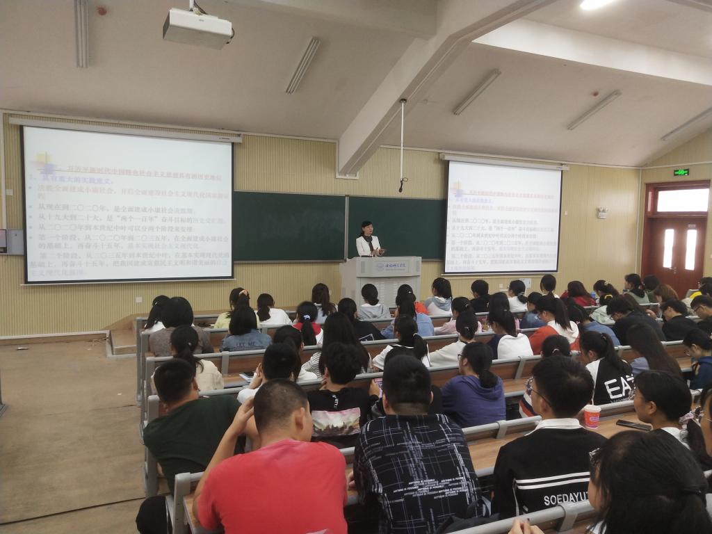 思想是行动的先导,为了做好新生的入党启蒙教育,加强新生的理论武装,帮助新生树立正确的世界观、人生观和价值观。21日上午在滨湖校区铭传楼101教室,数学与统计学院党委书记郑支农为新生上了第一堂课——《认真学习贯彻习近平新时代中国特色社会主义思想--肩负起当代大学生的历史使命》。郑支农以习近平总书记给北京大学援鄂医疗队全体“90后”党员的回信、习近平总书记考察安徽、湖南时的重要讲话中对教育、青年的深情寄语和殷切嘱托为引言,围绕三个问题——习近平新时代中国特色社会主义思想的形成条件、理论体系、历史地位,深入浅出为同学们进行了详细宣讲。最后,郑支农教育引导新生们要增强“四个意识”、坚定“四个自信”、做到“两个维护”。激励新生们要弘扬伟大抗疫精神,勇于担当作为,肩负起当代大学生的历史使命,树立远大理想,做好大学规划,用自己的实际行动书写美好的大学生活,不负青春,不负韶华、不负时代,为实现中华民族伟大复兴的中国梦学好知识,努力使自己成长为德智体美劳全面发展的社会主义建设者和接班人。