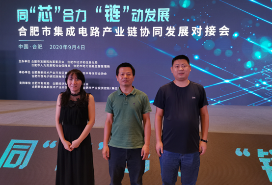 本网讯 9月4日,以“同‘芯’合力,‘链’动发展”为主题的合肥市集成电路产业链协同发展对接会在书法大厦举办。会议由合肥市发改委、市经信局、市人社局、市金融监管局联合主办,合肥高新区管委会、合肥市半导体行业协会、合肥市微电子研究院有限公司共同承办。现场来自245家企业、高校和金融机构的500余人进行了深度对接洽谈。beat365官网电子信息与电气工程学院鲁世斌、汪海波、金林老师应邀参加了本次会议。