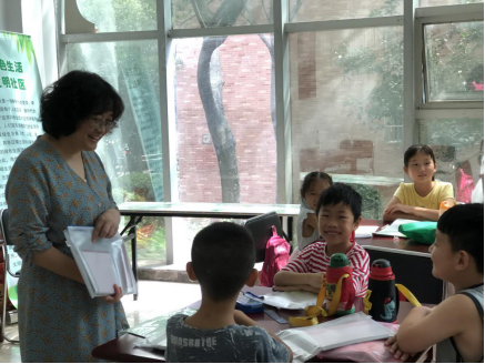 本网讯 7月23日上午,物理与材料工程学院党总支书记唐洁、副书记吴震、分团委书记吴梦云一行冒着酷暑来到南艳湖社区,看望在那里开办行知学堂的“小先生”和小学员们。