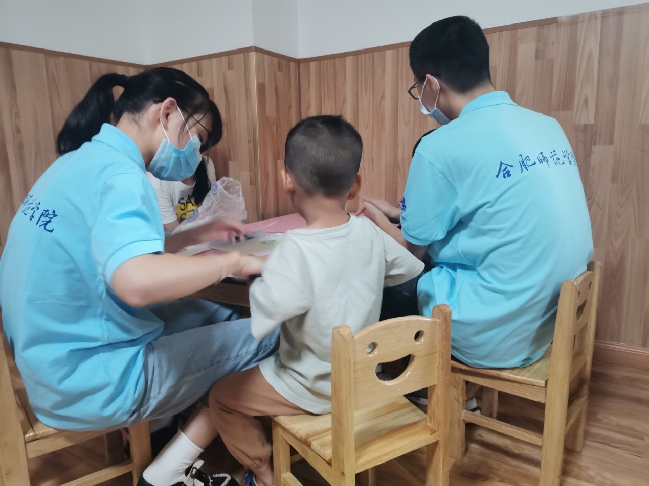本网讯 星星闪烁光芒,行知奉献力量。为响应团中央和学校开展暑期社会实践活动的号召,践行“爱满天下知行合一”的校训精神,2020年暑期,学校与经开区莲花社区连续第二年合作开展“星星守望——关爱自闭症儿童”志愿服务项目,在合肥市经开区思语自闭症儿童康复中心、梦之桥自闭症儿童康复中心、晓燕子自闭症儿童康复中心开设了3家特殊“行知学堂”。
