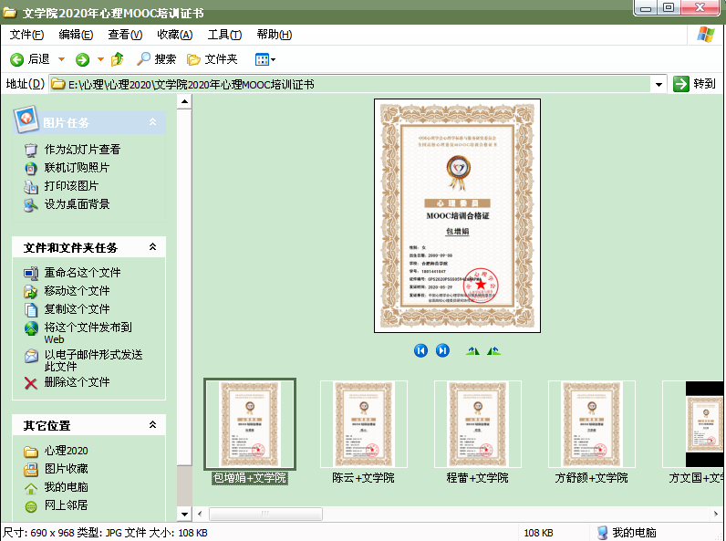 一是参与2020年心理委员MOOC培训。培训内容包括:心理委员会谈技巧、常见心理问题的症状及识别、大学生心理危机的预防与干预等。19级网络与新媒体二班心理委员郑谦君在完成培训后,表达了自己的想法:“感谢学院安排的培训,我更加能够意识到心理委员的重要性,在今后的工作中我会为同学们普及专业的心理知识,帮助同学们塑造健康的心态。”此次培训有利于加强心理健康教育学生骨干队伍建设,充分发挥班级心理委员的朋辈辅导和基础预警作用。