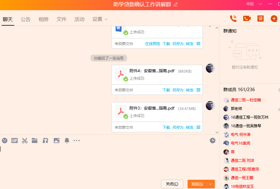 为确保学院诚信教育取得实效,学院分批次组织召开了诚信专题教育,资助老师通过线上QQ群组,宣讲生源地信用助学贷款知识,分析个人征信对学生未来择业、工作、生活的影响。同时,资助老师重点解读了《贷款毕业生须知》,从校园地和生源地国家助学贷款的毕业确认、基本流程、还款方式、注意事项等方面为同学详细讲解了国家助学贷款的还款知识。