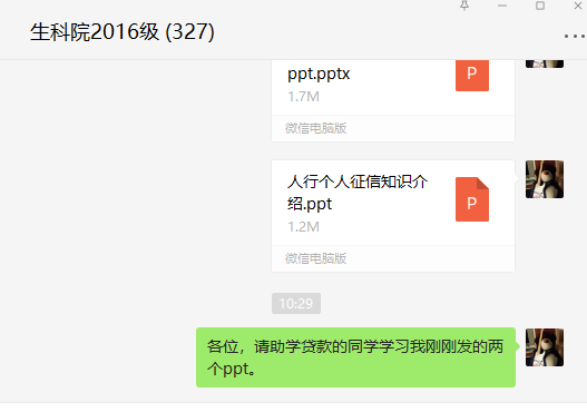 二是观看影片及发放宣传手册。生命科学学院各个年级辅导员分别将助学贷款宣传片、宣传手册ppt线上发放给学生,让学生更加熟悉贷款流程。