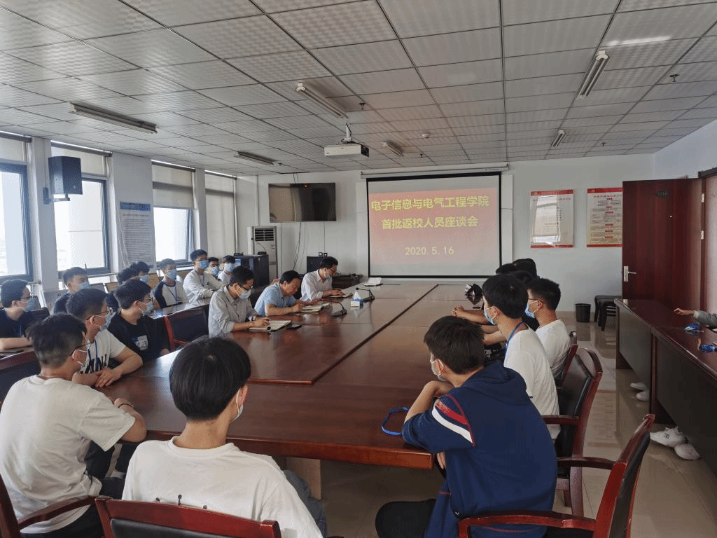 本报讯 为加强疫情防控期间对返校学生的管理,了解学生返校后的思想动态及诉求,5月16日,电子信息与电气工程学院召开首批返校应届毕业生座谈会,电子信息与电气工程学院负责人、毕业班辅导员参加座谈,围绕疫情防控、科研安排、毕业生就业等问题与所有返校学生进行了交流。