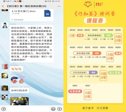 在21天的活动中,参与学生通过阅读各类书籍,包括畅销书、红色经典等,分享读书体会、撰写学习心得等形式,并用打卡的方式分享读后感和书评。另外还设置分组竞争模式,通过每日评奖评优,激发了学生的学习热情,同时还邀请了各类专家老师,优秀的毕业生等定期给学生们进行线上专题分享,例如如何高效阅读,考研交流等。活动最后,参加阅读的同学还需要通过完成成长记录手册,检验阅读效果。
