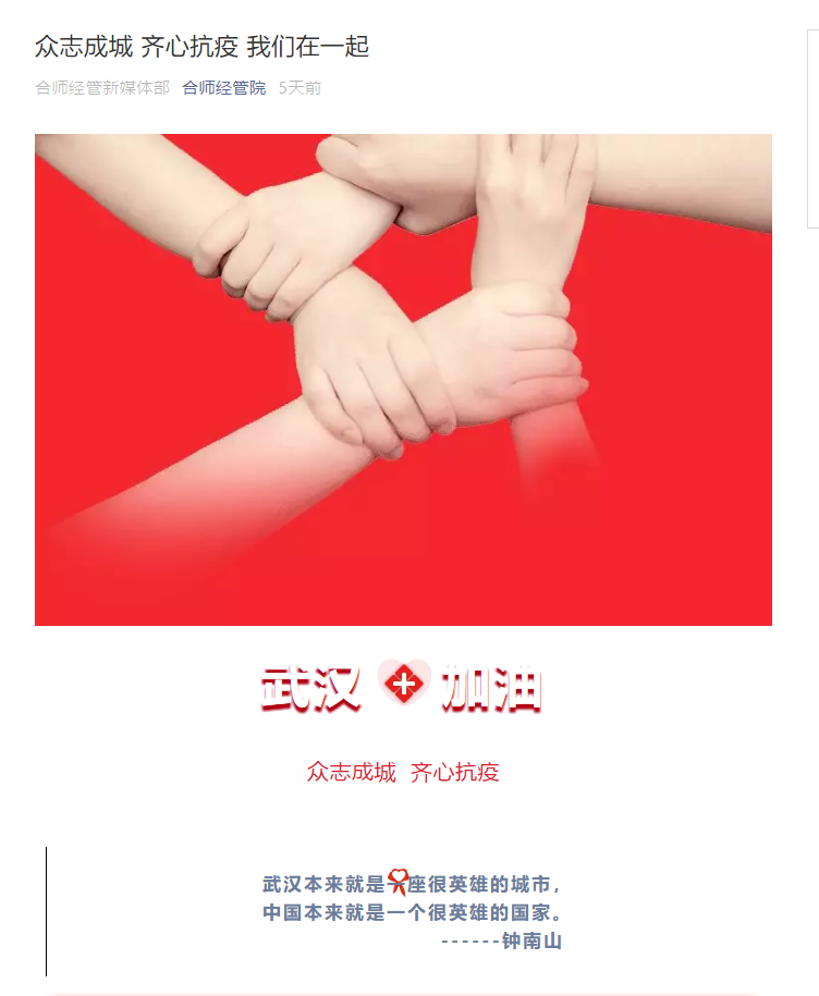 众志成城 齐心抗疫 我们在一起:https://mp.weixin.qq.com/s?__biz=MzI1NjYzMjgyMw==&mid=2247484819&idx=1&sn=c793f0490c9a1487d7008091a5654120&chksm=ea22f70bdd557e1d578a4c8de0254c216458bc9dd4d4859d543699c1d8cc039e0a826890d55c&mpshare=1&scene=23&srcid=0214E9WSFUgEoyr201gsg8Jh&sharer_sharetime=1581610171567&sharer_shareid=57c091eadfc60aa8eca2ea9a9c4105ce#rd