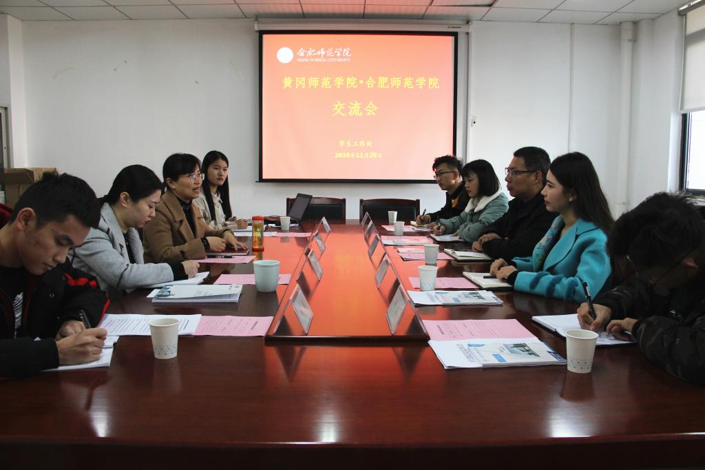 本网讯 11月29日,黄冈师范学院学生工作部副部长张学仁、教育科科长祖拉等一行5人来院考察交流。我院学生工作部副部长刘艳在行知楼414会议室接待张学仁一行,并主持召开交流会。