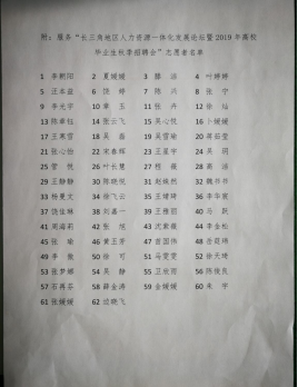 本网讯 11月23日,在中国合肥人力资源服务产业园举办了“长三角地区人力资源一体化发展论坛暨2019年高校毕业生秋季招聘会”以及全国人力资源市场高校毕业生就业服务周启动仪式和中国合肥人力资源产业园开园仪式,外国语学院60余名志愿者们积极奉献,耐心周到的服务,得到了中智合肥产业园管理有限公司的表扬。