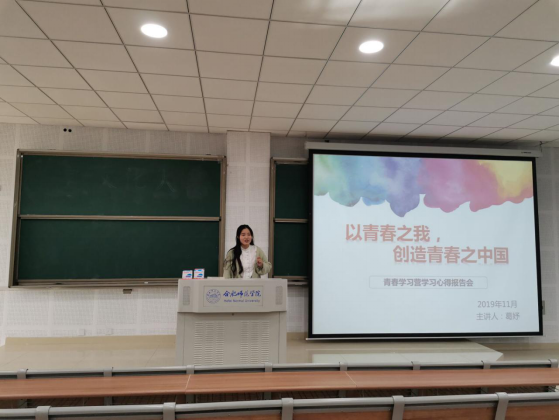 本网讯 11月16日上午,物理与材料工程学院在滨湖新区博学楼D101教室召开青春学习营宣讲活动暨学习心得报告会,活动由17级葛妤同学主持,物理与材料工程学院全体2019级新生参会。