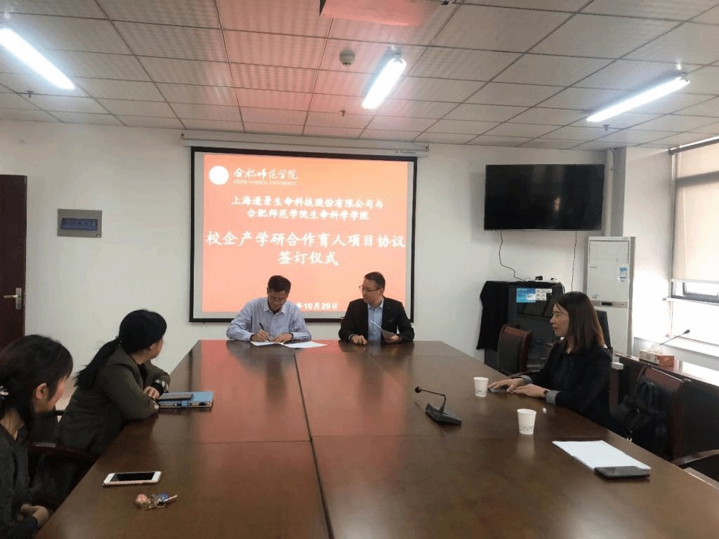 招聘会结束后,生命科学学院领导与该公司一行在行知楼1502会议室就毕业生的实习与就业工作进行了洽谈,在毕业生的实习、毕业论文和就业等方面进行了充分沟通与交流并达成一致。最后,生命科学学院院长徐忠东与上海透景生命科技股份有限公司人力资源总监宋毅进行了校企产学研合作育人项目签约。