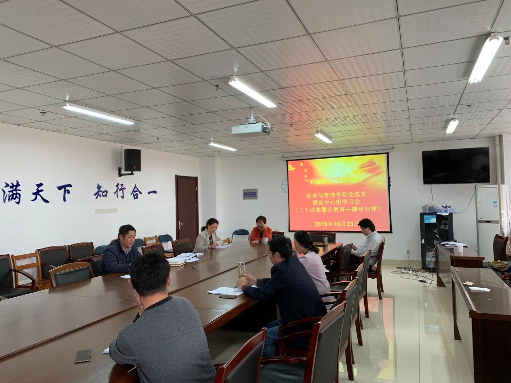 本网讯 10月23日,经济与管理学院党总支于行知楼902会议室召开二级中心组理论学习会,围绕“廉洁自律”开展主题交流研讨。经济与管理学院党总支书记、副书记,院长、副院长,党总支委员及学院各支部书记共同参与了本次会议,进行了集中学习和研讨,结合“三个以案”警示教育进行学习和发言。