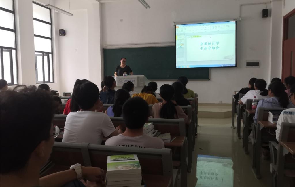 本网讯 9月23日至25日,为加强2019级新生对学院及各专业了解,数学与统计学院举办了为期三天的入学教育。此次入学教育对本院新生从理想信念、职业教育规划、入党启蒙教育、学风建设、校园安全、心理健康等方面展开了全方位、深层次的教育。9月25日下午,学院分别在博学楼B106、B110、C201、C203对我院应用统计学、金融工程、数学与应用数学(师范)、经济统计学分别进行了专业发展教育。