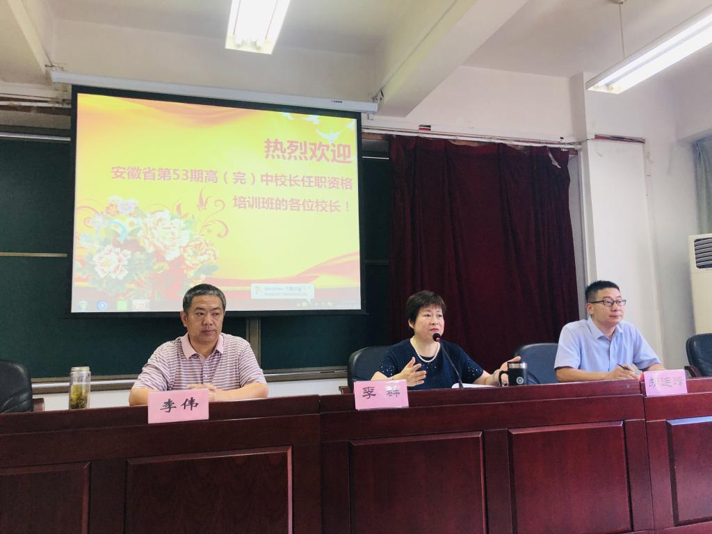 本网讯 9月10日上午,安徽省第53期高(完)中校长任职资格培训班在三孝口校区西干训教室举行了开班典礼。教师教育学院院长李群教授、正处级组织员李伟班主任老师、干训部副主任胡连峰副教授出席了典礼。本次开班典礼由胡连峰副主任主持。