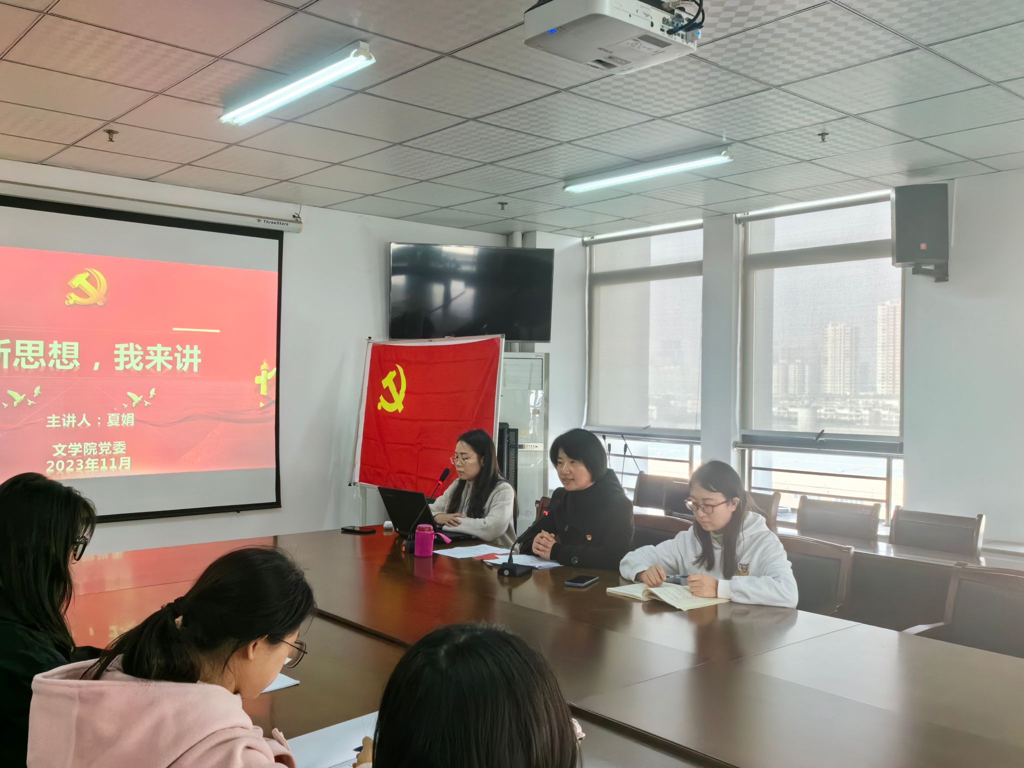 仪式后,夏娟结合“新思想 我来讲”主题党日活动,重点围绕“深入学习贯彻习近平总书记关于青年工作的重要思想”的内容进行学习研讨。(文学院)