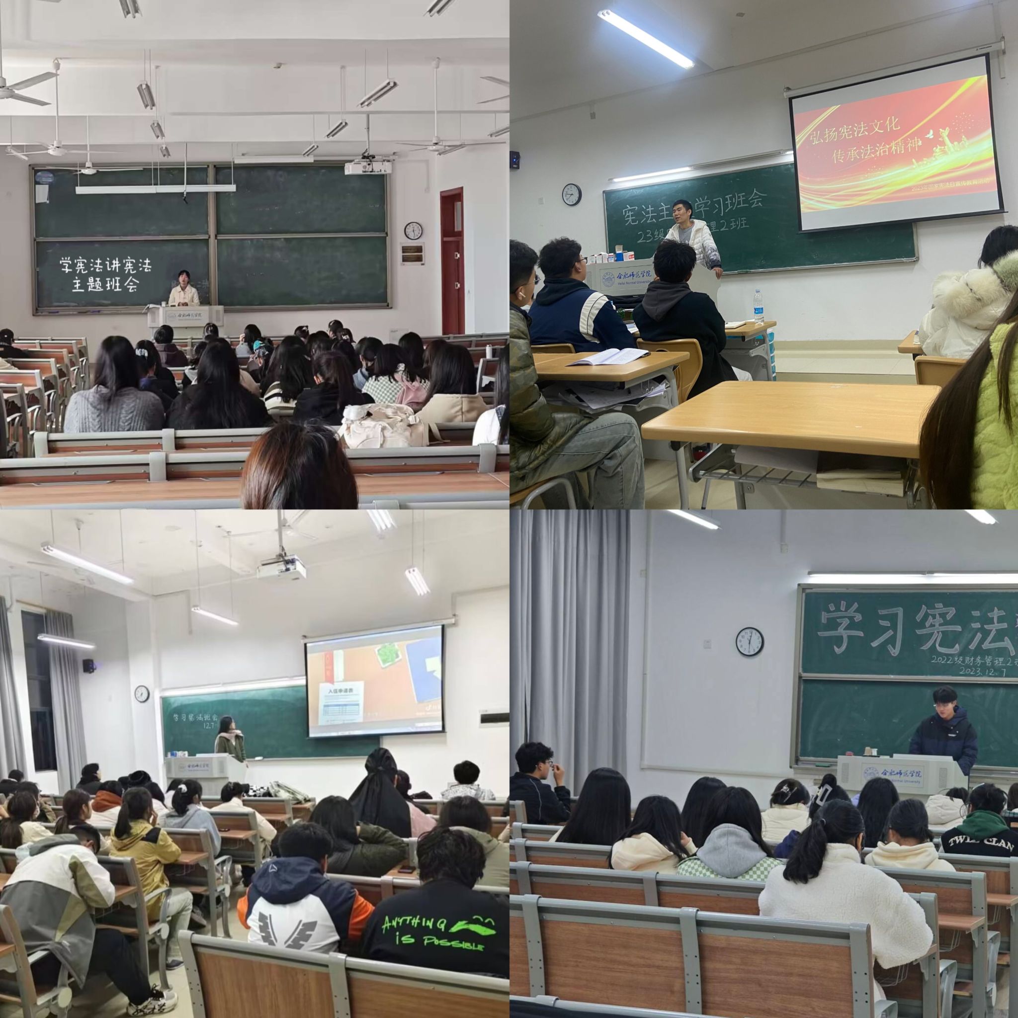 12月4日是第十个国家宪法日,也是我国现行宪法公布施行41周年。2023年全国“宪法宣传周”宣传活动的主题为“大力弘扬宪法精神,建设社会主义法治文化”。为进一步增强大学生的法治意识和遵纪守法的自觉性,维护宪法权威。12月3-8日,经济与管理学院各班级陆续开展“学宪法 讲宪法”主题班会。