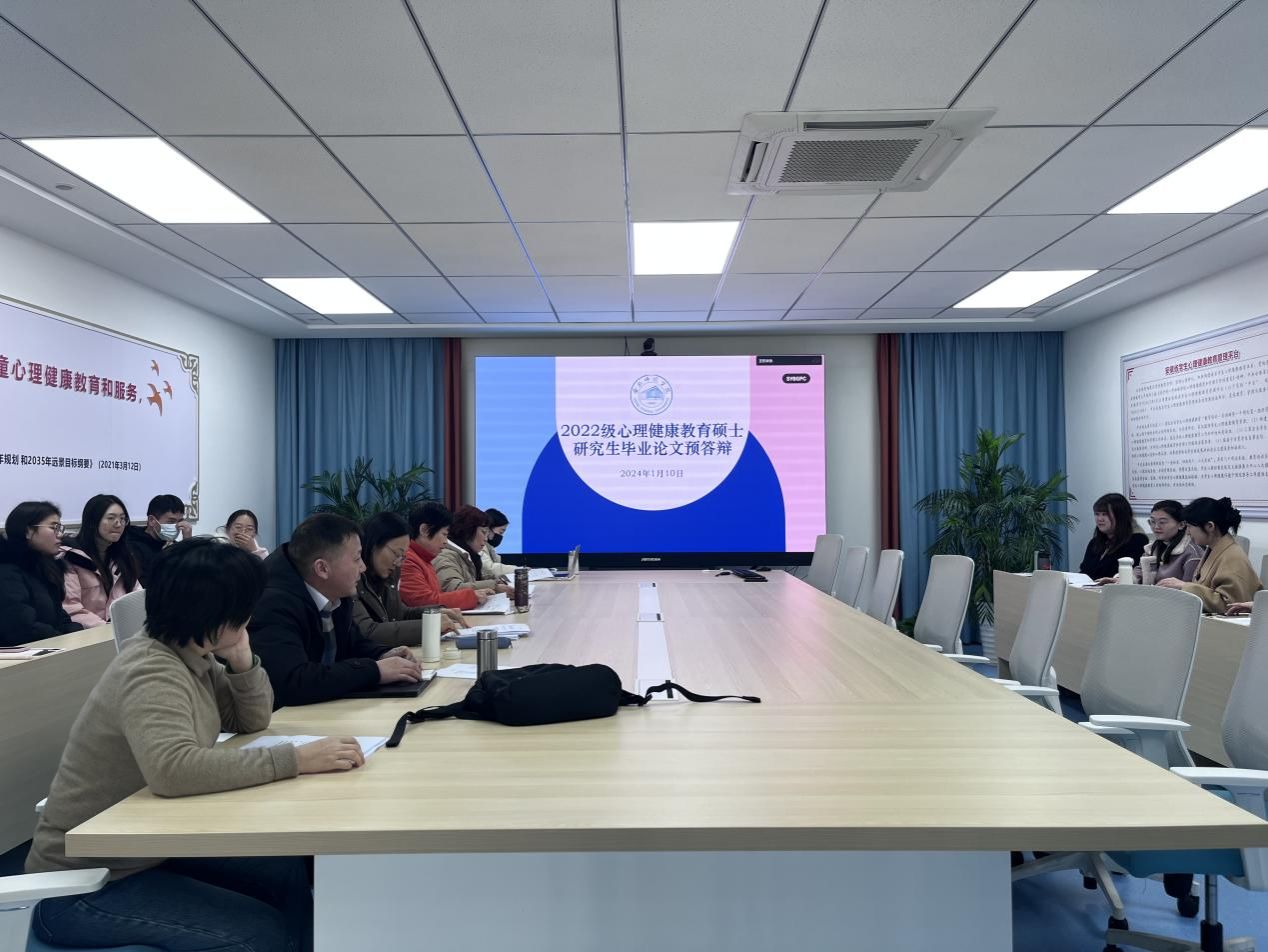 根据教育部进一步严格规范研究生教育质量管理要求及《beat365中文官方网站教育硕士专业学位研究生学位授予暂行规定》(校研〔2023〕16号)等文件精神,1月10日上午,教育与心理科学学院2024届心理健康教育硕士在图书馆心理健康中心会议室开展了毕业论文预答辩。本次预答辩工作分两组进行,采取线上线下相结合的方式,特别邀请华东师范大学心理与认知科学学院郝宁教授线上指导,全体心理健康教育研究生导师参与预答辩评审。