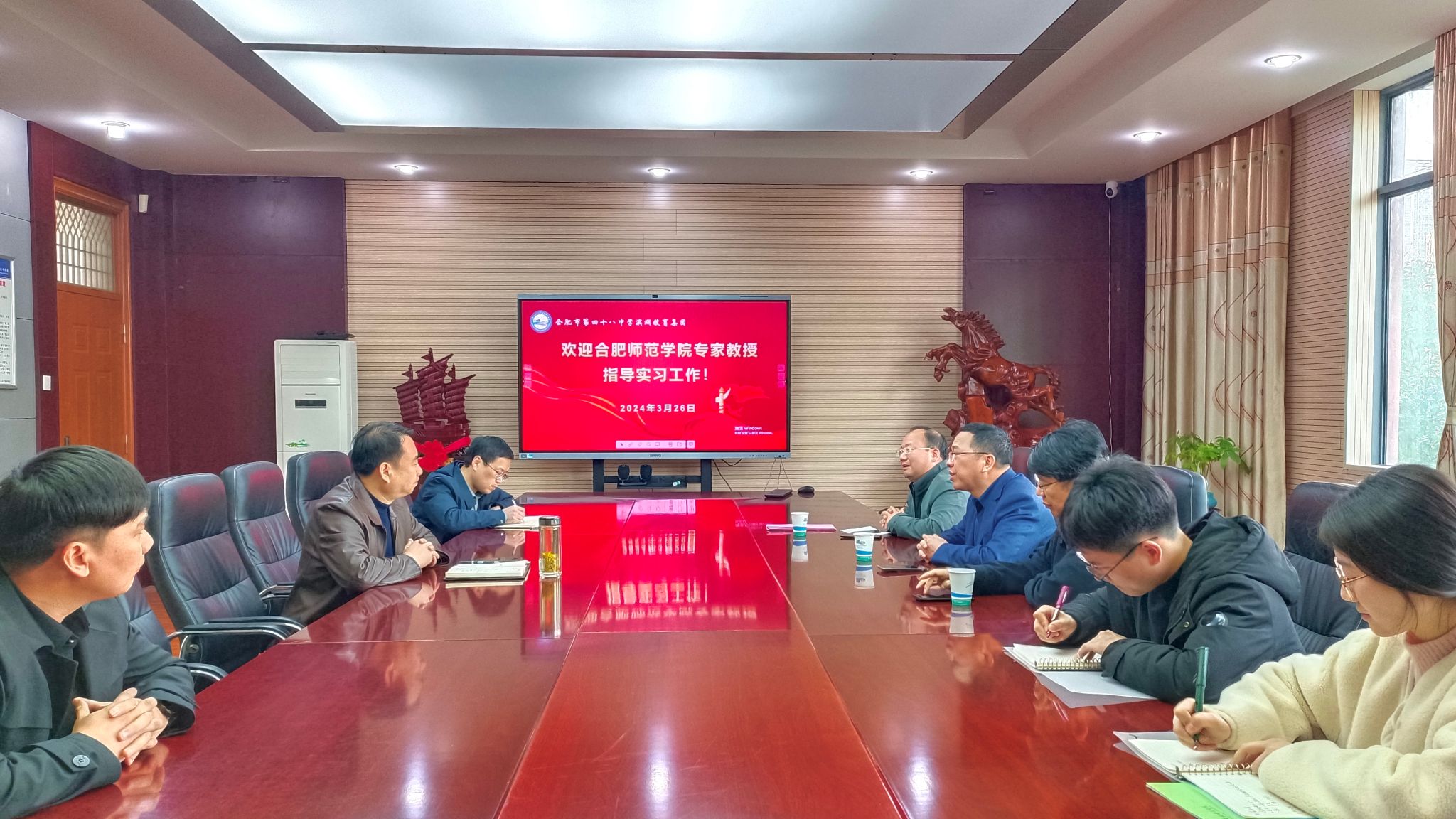为加强教育实践基地建设,深入推进产学研合作育人,做好师范专业认证后半篇文章,3月26日,文学院院长何旺生、副院长甘松、中文系党支部书记张登林一行赴合肥市四十八中滨湖教育集团、合肥市四十六中海恒分校等合作学校,推进师范生实践教育基地建设并看望实习生。