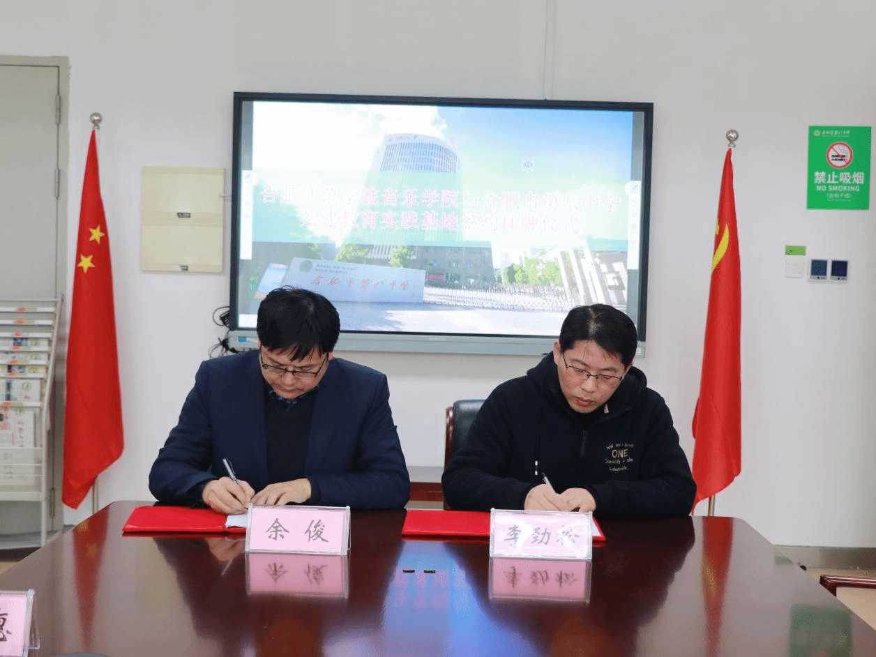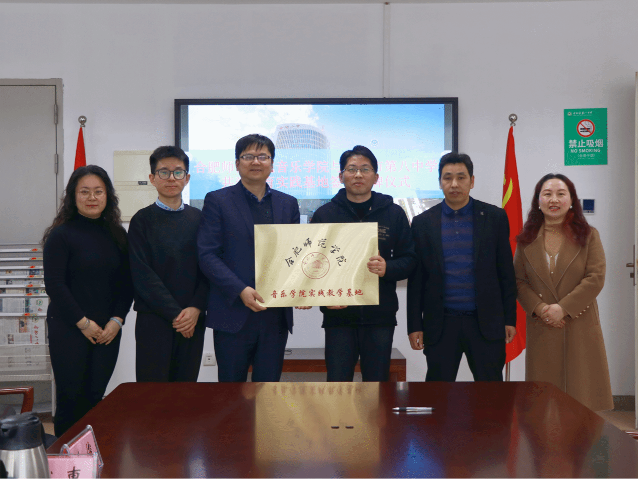 3月26日下午,在合肥市第八中学举办了beat365中文官方网站音乐学院、合肥市第八中学实践教学基地挂牌仪式。音乐学院院长李劲松、党委副书记宋辉、实践实训中心主任陆伟与合肥市第八中学副校长余俊、教务处主任张少庸、艺术学科主任杨欢欢等人共同出席了挂牌仪式。