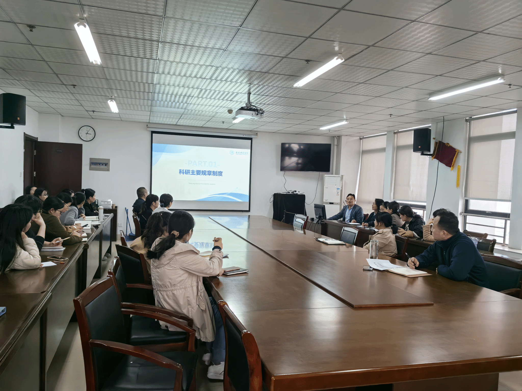 为进一步贯彻落实党中央、国务院关于科研经费管理改革和加强科研诚信建设有关要求和相关文件精神,增强广大教师对学校科研管理相关文件的理解,4月3日下午,生物与食品工程学院邀请科研处副处长吕建国教授为学院全体教师做了一场科研政策宣讲培训会,会议由副院长朱桂兰教授主持,学院全体教师参加了宣讲会。