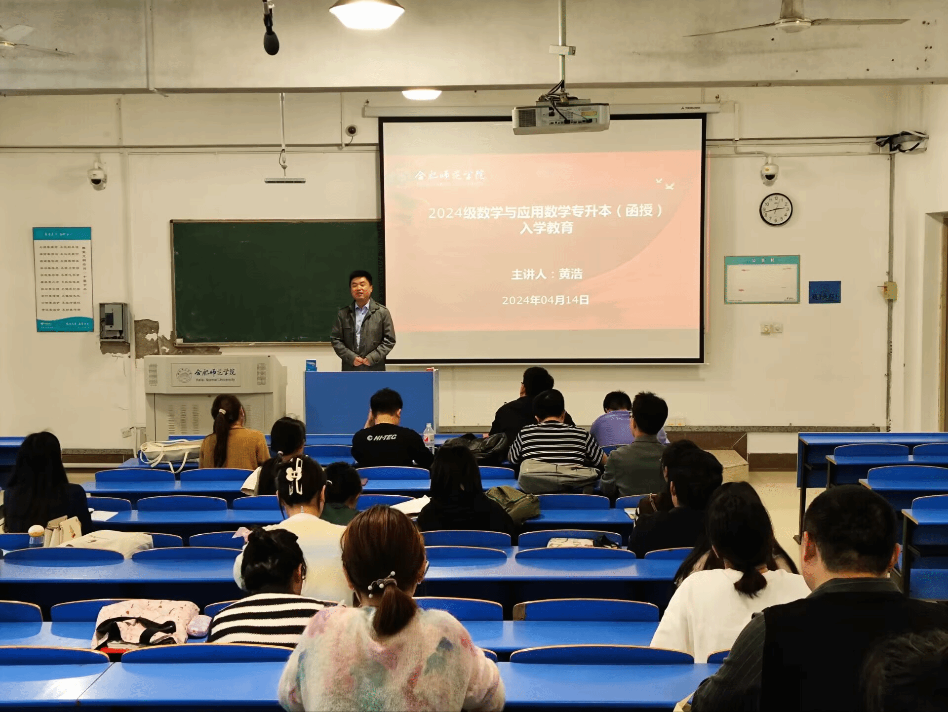 为帮助学生了解高等学历继续教育学习特点,熟悉学院的各项规章制度,尽快适应继续教育教学,4月14日下午,数学与统计学院在逸夫楼109教室开展了2024级新生入学教育,数学与统计学院副院长黄浩、班主任王志老师以及全体新生参加本次入学教育。