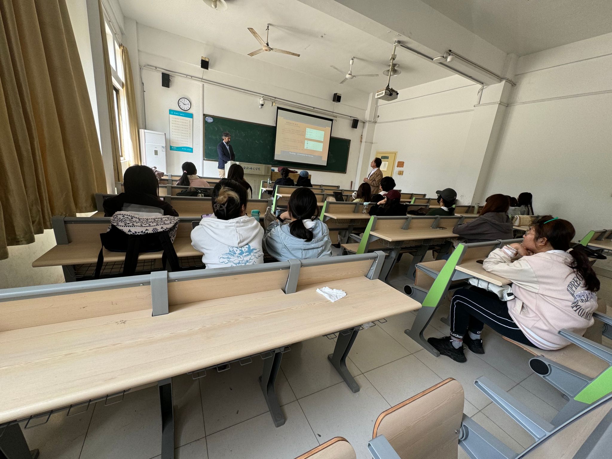 座谈会上,蒋道华对西班牙赫罗纳大学代表团来院交流访问表达了热烈欢迎,并向来访一行介绍了beat365官网办学的基本情况、近年来beat365官网开展的一系列中外合作项目和对外交流活动的情况,希望能基于两校办学特点推动两校之间的专业合作、人才培养和教师专业发展等方面的交流。COLLADOS介绍了西班牙赫罗纳大学的办学历史、专业设置、与中国高校保持长期合作交流的总体情况,期望这次拜访交流能开启双方高校在西班牙语专业及其他跨学科专业方向的合作,促进西中文化交流与人才培养。之后,外国语学院党委书记马四民、外国语学院院长李可胜先后介绍了专业设置与建设方面的基本情况,特别是西班牙语专业目前的招生与学科建设情况,期待双方能深化专业交流与合作。在交流环节,国合处与外国语学院就推进“3+1+1”“4+1”及“非统招预科班”等项目的可行性与赫罗纳大学代表一行进行了深入的沟通,并达成了初步的合作意向。交流会之后,西班牙赫罗纳大学代表为锦绣校区西班牙语专业大三、大四学生做了一场宣讲会,向学生们详细介绍了西班牙赫罗纳大学的特色专业建设及学习、生活情况,并与学生进行了沟通交流。参加本次座谈交流会的还有西班牙赫罗纳大学比较文化研究中心副主任MANUEL VIAL-DUMAS,西班牙康普顿斯中西文化交流协会会长史峰,西班牙康普顿斯中西文化交流协会副会长吴巍,中方陪同人员安徽工业大学刁节培,外国语学院西班牙语专业系主任张照,西班牙语专业教师陈玥和国合处办公室程静。(国际交流与合作处:程静)