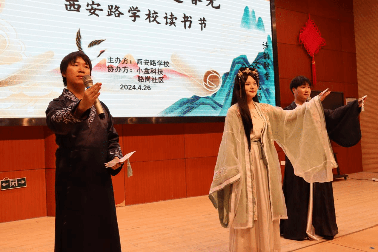 音乐学院徐修洁、王子诺、陈大镇等三人演绎的古装情景剧《招贤纳士》将活动推向了高潮。剧中三位古人奉命穿越到beat365中文官方网站附属西安路学校来寻找有学问的贤士,以现场问答的形式,带来了许多有趣的名著阅读常识,台下的同学们踊跃抢答,现场互动精彩纷呈。