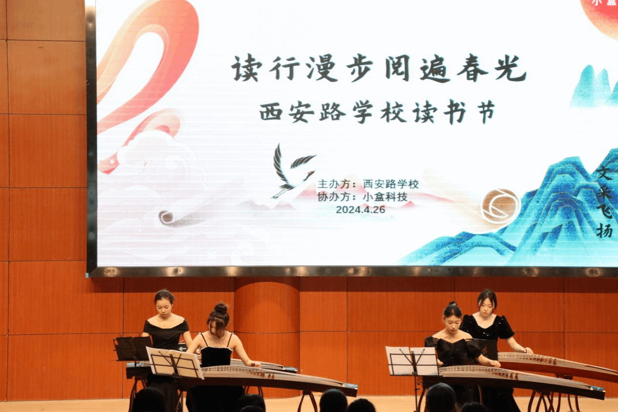 音乐学院姚天问、龚钰婷、朱彤、梁轩等四位同学以一曲大气磅礴的《盛世国乐》拉开了阅读活动的序幕,优雅的古筝开场曲使场内遍布了文艺气息。