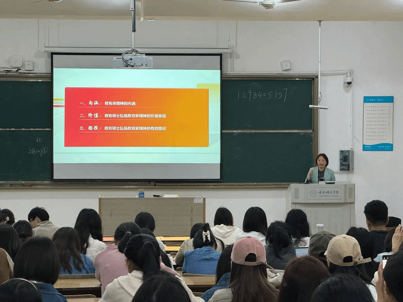 4月28日,研究生处在博约楼108教室组织开展了以“弘扬教育家精神”为主题的专题讲座。本次讲座邀请了马克思主义学院傅文茹作为主讲人,2023级全体教育硕士研究生到场参加。