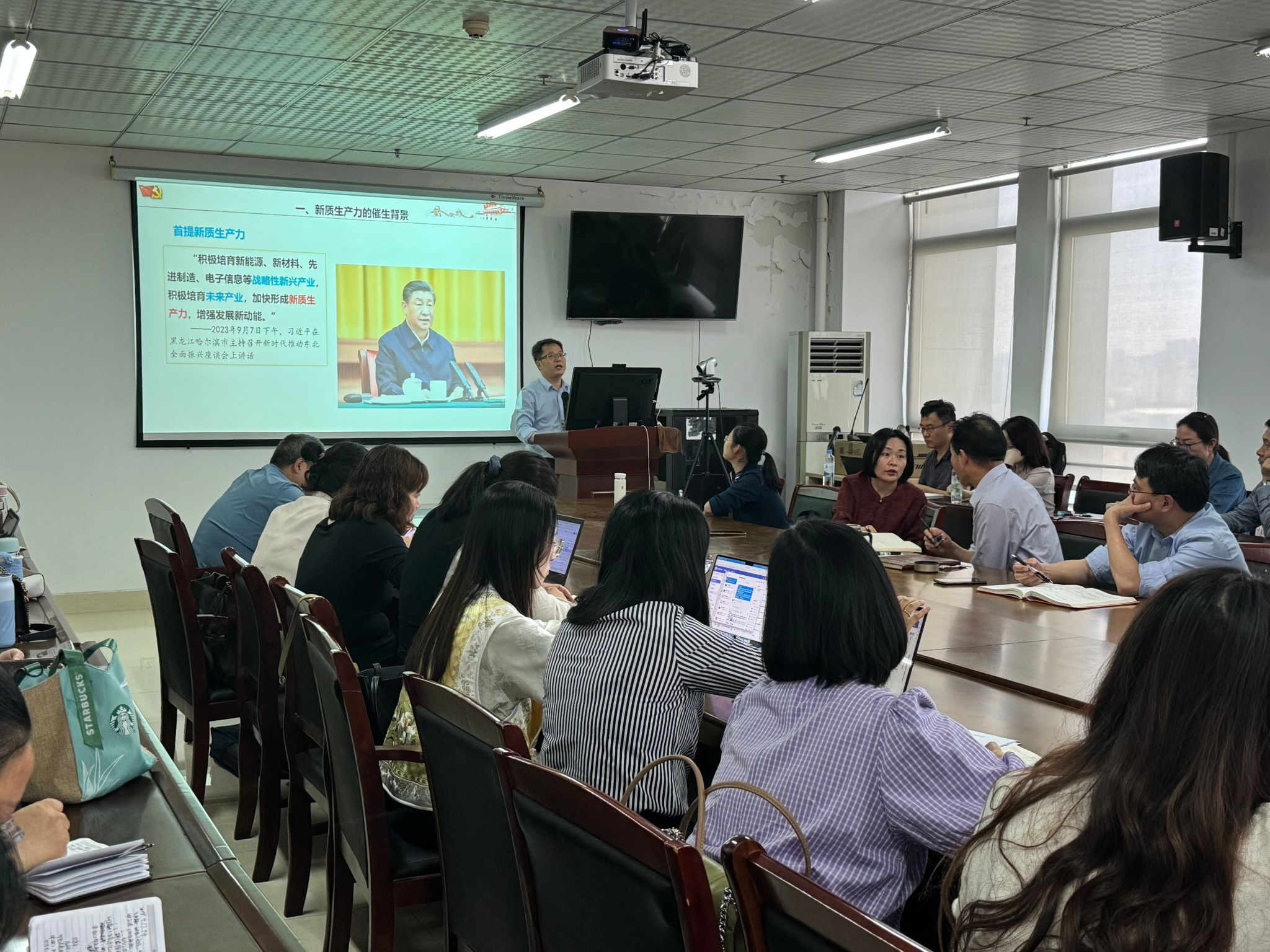 5月9日下午,马克思主义学院教授朱玉利为计算机与人工智能学院全体教职工开展以“新质生产力”为题的学术讲座,宣讲会由计算机与人工智能学院党委书记王祥主持。