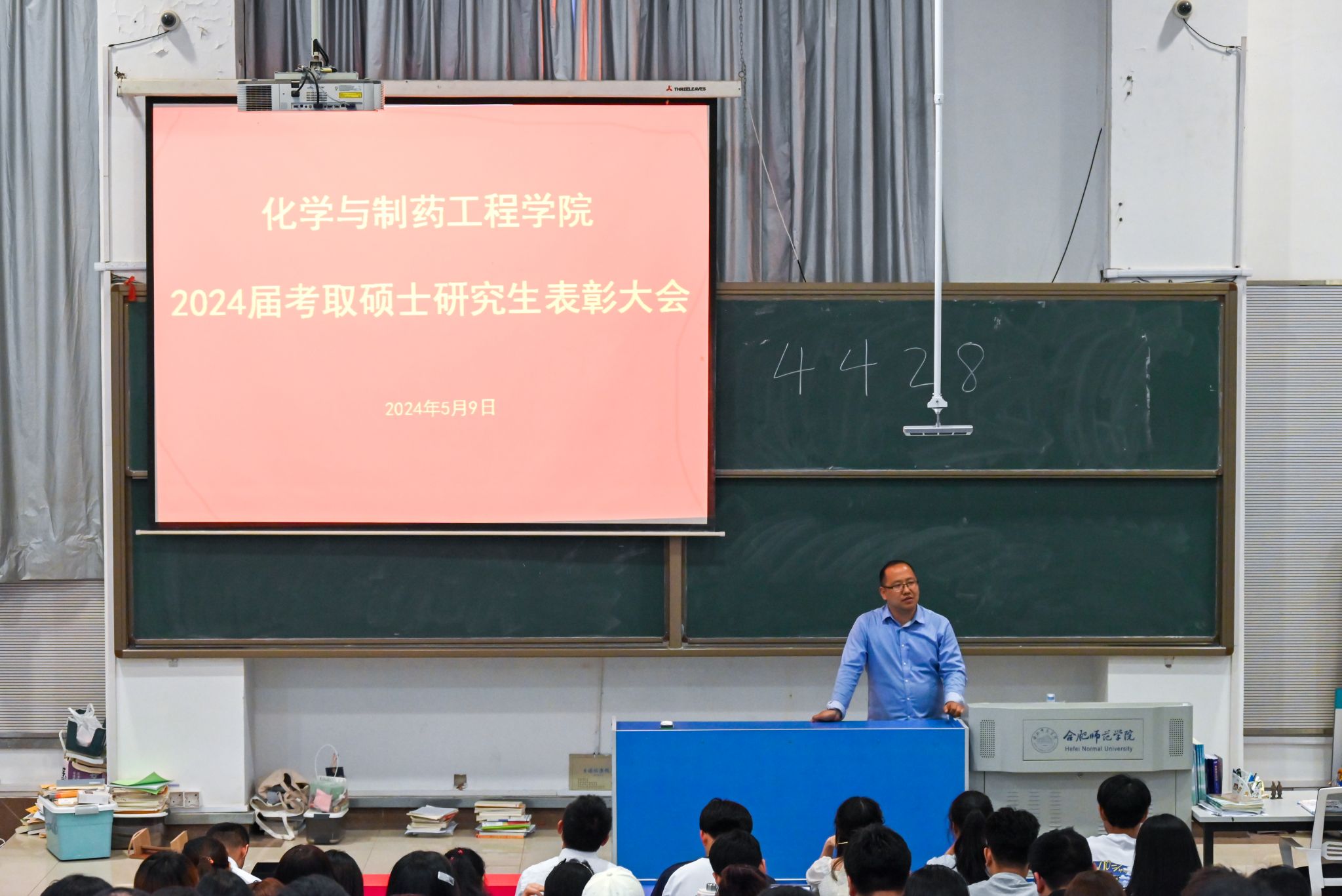 为表彰考研成功优秀学子,激励我院广大学子考研热情,弘扬优良的院风学风,5月9日,化学与制药工程学院于逸夫楼西阶3教室举办2024届毕业生考取研究生表彰大会,会议由毕业班辅导员汪颖主持,各班辅导员、学业导师,2024届毕业生考取研究生学生以及学院各年级在校生参加会议。