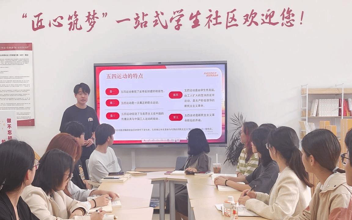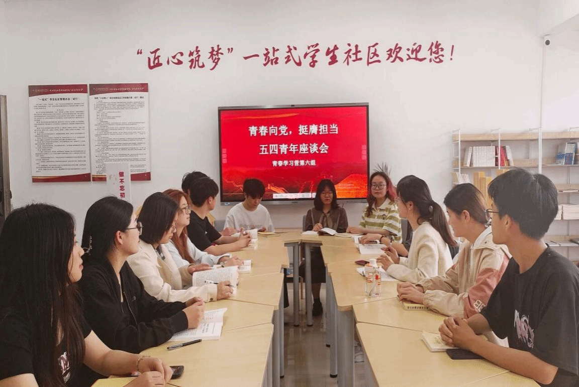 为弘扬五四精神,践行青春使命,展现当代大学生奋斗风采,5月8日晚,青春学习营第六组在匠心筑梦工作室“一站式”学生社区召开“青春向党,挺膺担当”主题座谈会。指导教师胡蝶和全体组员参加会议。