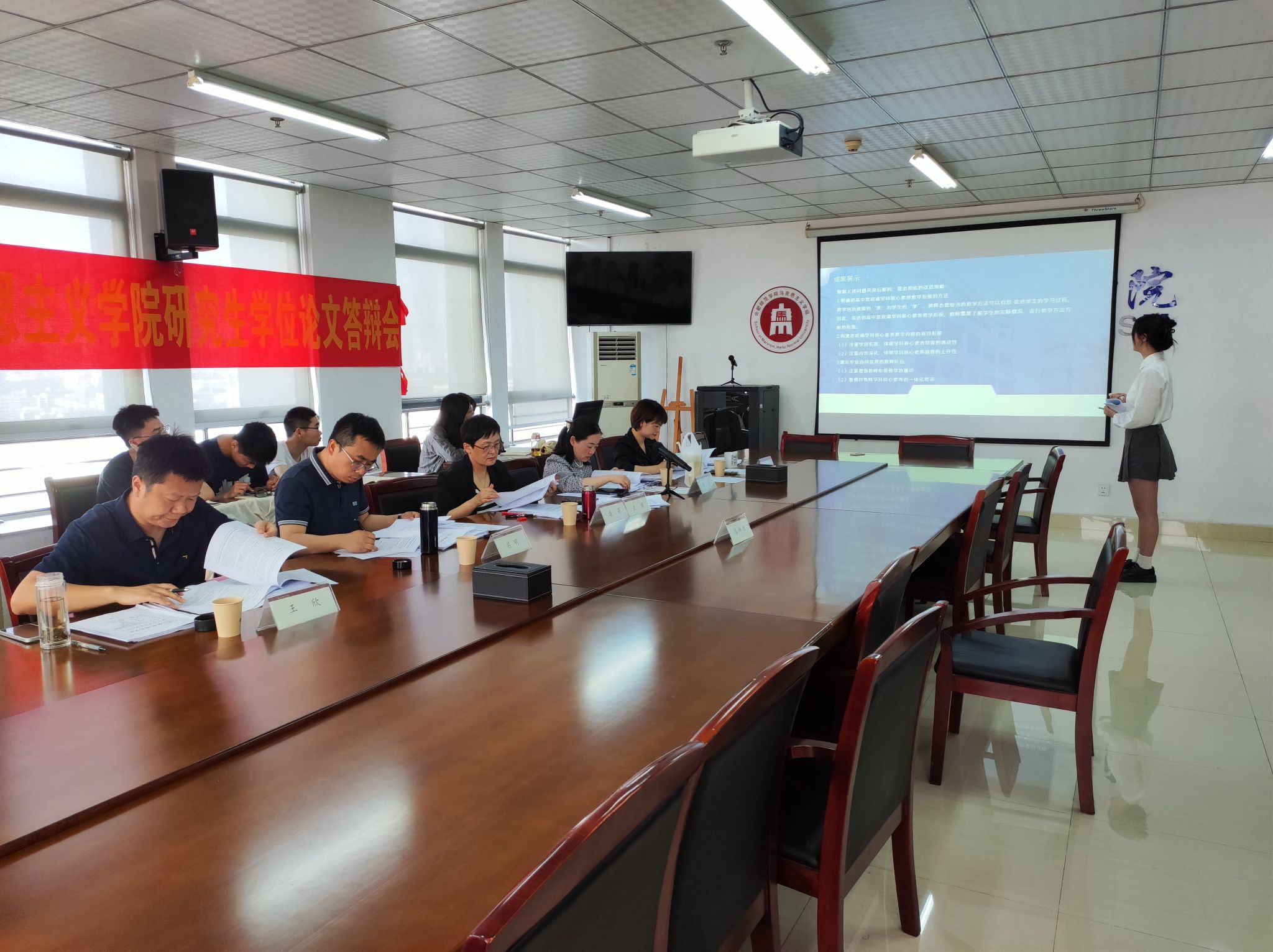 5月17日下午,马克思主义学院在行知楼1610、1711、1602、1712举行2024届研究生学位论文答辩会。答辩委员会主席分别由合肥工业大学潘莉教授、安徽医科大学柳泽民教授、安徽大学李明教授、安徽中医药大学尤吾兵教授担任,答辩委员会成员包括合肥市海顿学校校长陈昌云、安师大附属肥西二中校长陈姝、beat365中文官方网站附属西安路学校教导主任聂和彬、合肥市教科院徐文墙及部分校内导师。