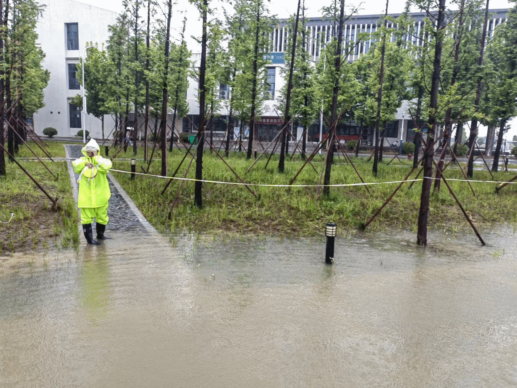 自5月27日凌晨开始,后勤处(基建办)工作人员迅速做出反应,组织物业服务中心迅速开展“拉网式”安全隐患排查,应急人员积极开启排水排污作业,冒雨完成了疏通排涝、清扫积淤、恢复沟井盖板等工作,重点排除了锦绣校区西南角因暴雨导致的部分围墙倒塌等险情。期间,后勤处(基建办)组织工作人员对三孝口校区平房进行了安全隐患排查。