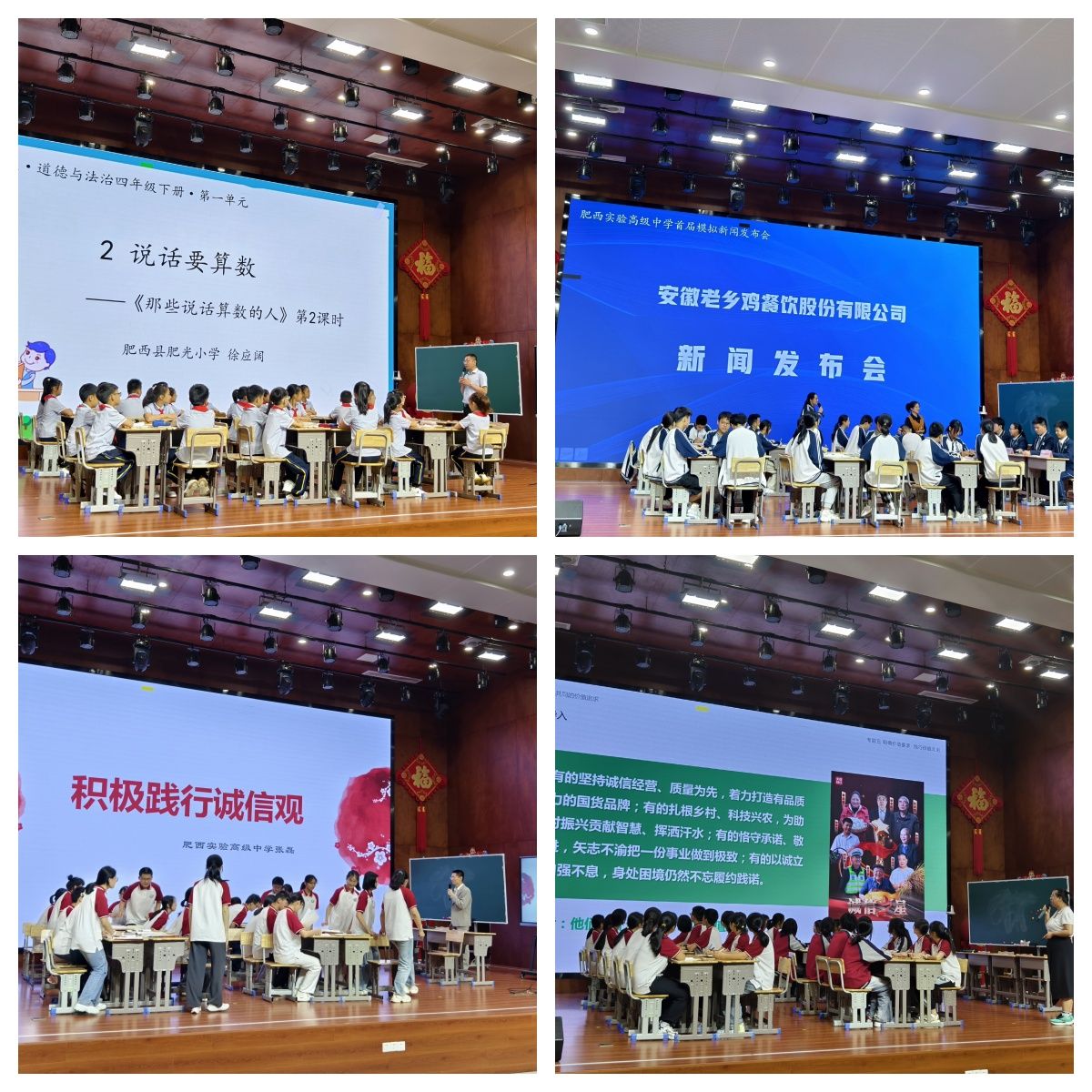 活动以“诚信”为主题,小初高大学采取同课异构的形式分别进行了四节思政课教学展示,遵循不同学段有不同侧重的原则,即小学注重道德情感,初中注重思想基础,高中注重政治素养,大学注重责任担当。各学段采取多元教学方式,尤其是初中学段的代入式、体验式教学,是落实学生核心素养培育的有效形式。