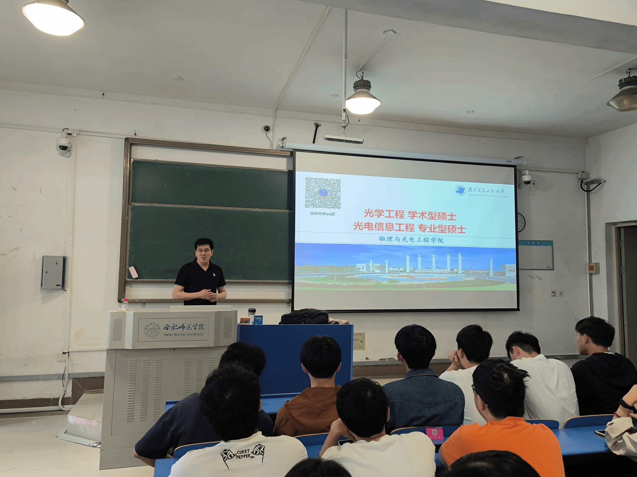5月30日下午,物理与材料工程学院在逸夫楼A104举办研究生报考系列宣讲会,邀请南京信息工程大学物理与光电工程学院副院长赖敏教授为考研学子作现场宣讲。2021级光电信息科学与工程专业学生全体参加,宣讲会由副院长余龙宝主持。