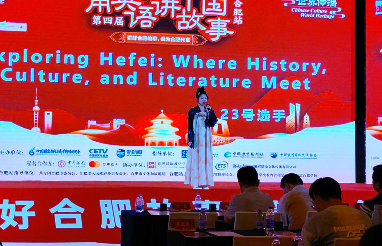 5月25日,由中国教育电视台、新航道国际教育集团、中国国家创新与发展战略研究会作为活动主办方,联合举办了第四届“用英语讲中国故事”活动合肥站城市展演暨颁奖典礼。经管学院23级经济学学生张文静凭借出色的表现,以一口流利的英语和生动的演绎,荣获三等奖和“舞台之星”称号,并被授予“合肥故事形象代言人”称号。